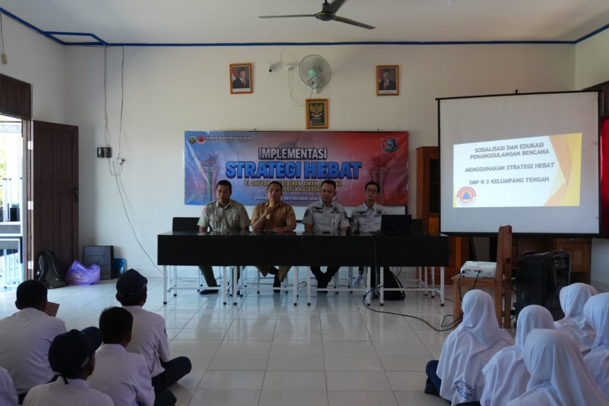 Asiasatunews.com, Kotabaru – Badan Penanggulangan Bencana Daerah (BPBD) Kabupaten Kotabaru terus memperkuat komitmennya dalam membangun Desa Tangguh Bencana (Destana) yang mandiri, adaptif, dan tangguh menghadapi potensi bencana. Melalui implementasi Strategi HEBAT (Hexahelix Edukatif, Beraksi, Antisipatif, dan Tanggap), BPBD menggelar kegiatan edukasi kebencanaan di SMPN 3 Kelumpang Tengah, Selasa (7/10/2025).