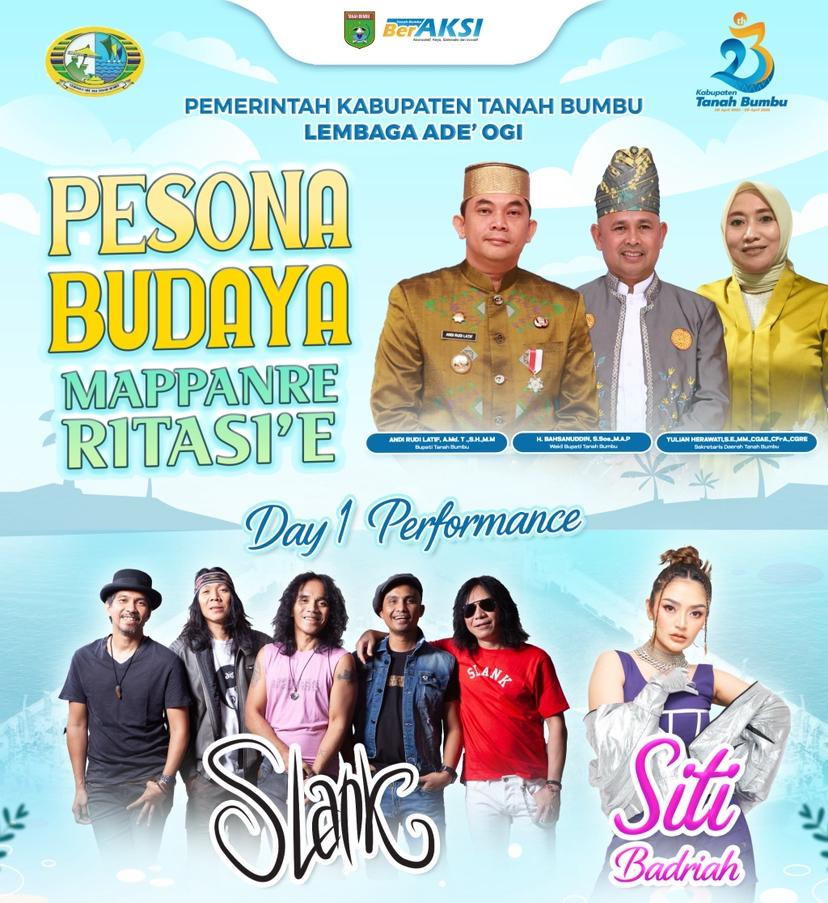“ Malam pembukaan Mappanre Ritasi’e di Pagatan akan ada penampilan band SLANK dan Siti Badriah, mari ramaikan pesta adat budaya ini,” kata Bupati Tanah Bumbu.