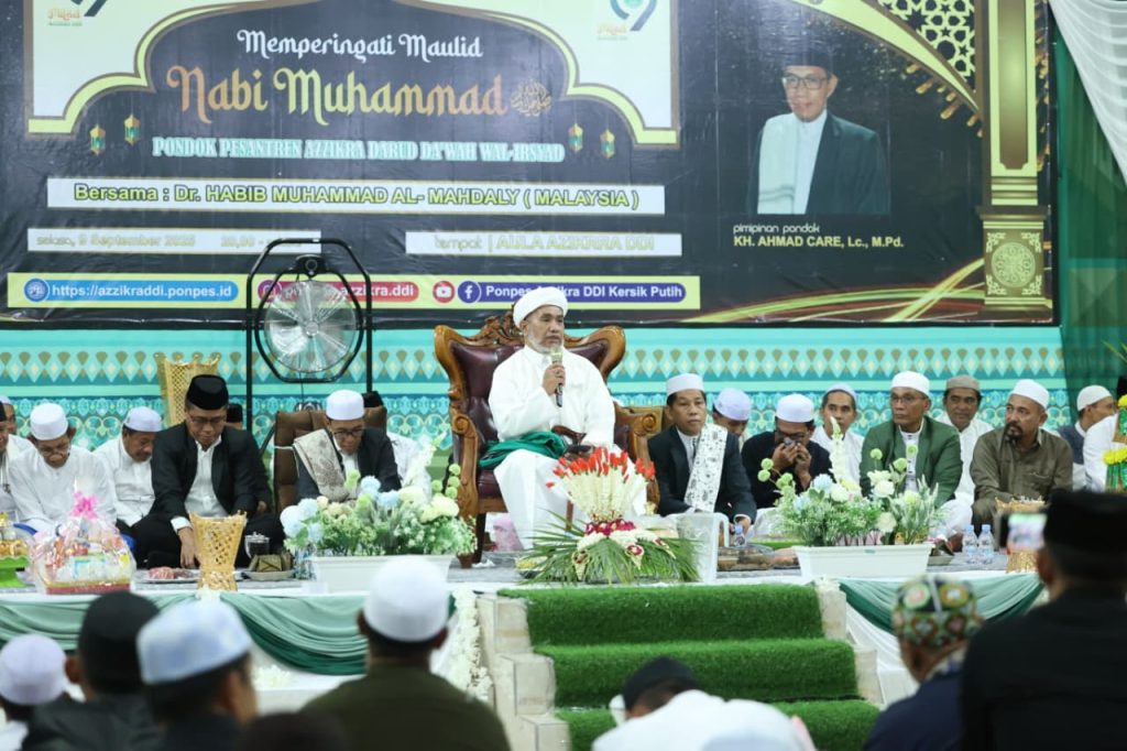 Staf Ahli Bidang Pemerintahan Hukum dan Politik, M. Yamani, mewakili Bupati Andi Rudi Latif untuk menyampaikan sambutan pada peringatan Maulid Nabi Muhammad SAW di Ponpes Azzikra DDI Kersik Putih, Kecamatan Batulicin, Selasa malam (8/9/2025).