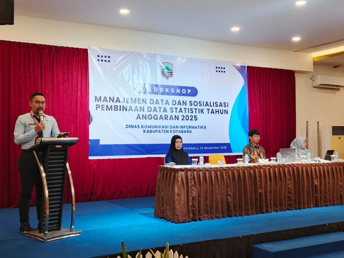 Asiasatunews.com, Kotabaru – Pemerintah Kabupaten Kotabaru melalui Dinas Komunikasi dan Informatika (Diskominfo) menggelar Workshop Manajemen Data dan Sosialisasi Pembinaan Data Statistik Tahun Anggaran 2025, Jumat (14/11/2025), di Ballroom Lantai 4 Hotel Grand Surya Kotabaru.