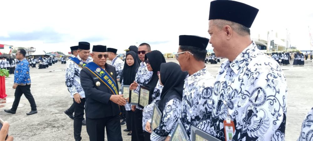 Asiasatunews.com, Kotabaru – Bertepatan HUT PGRI yang ke-80 tahun 2205, Pemerintah kabupaten Kotabaru memberikan penghargaan kepada para guru yang berprestasi mulai dari pendidikan dan olahraga, Senin (8/12/25).